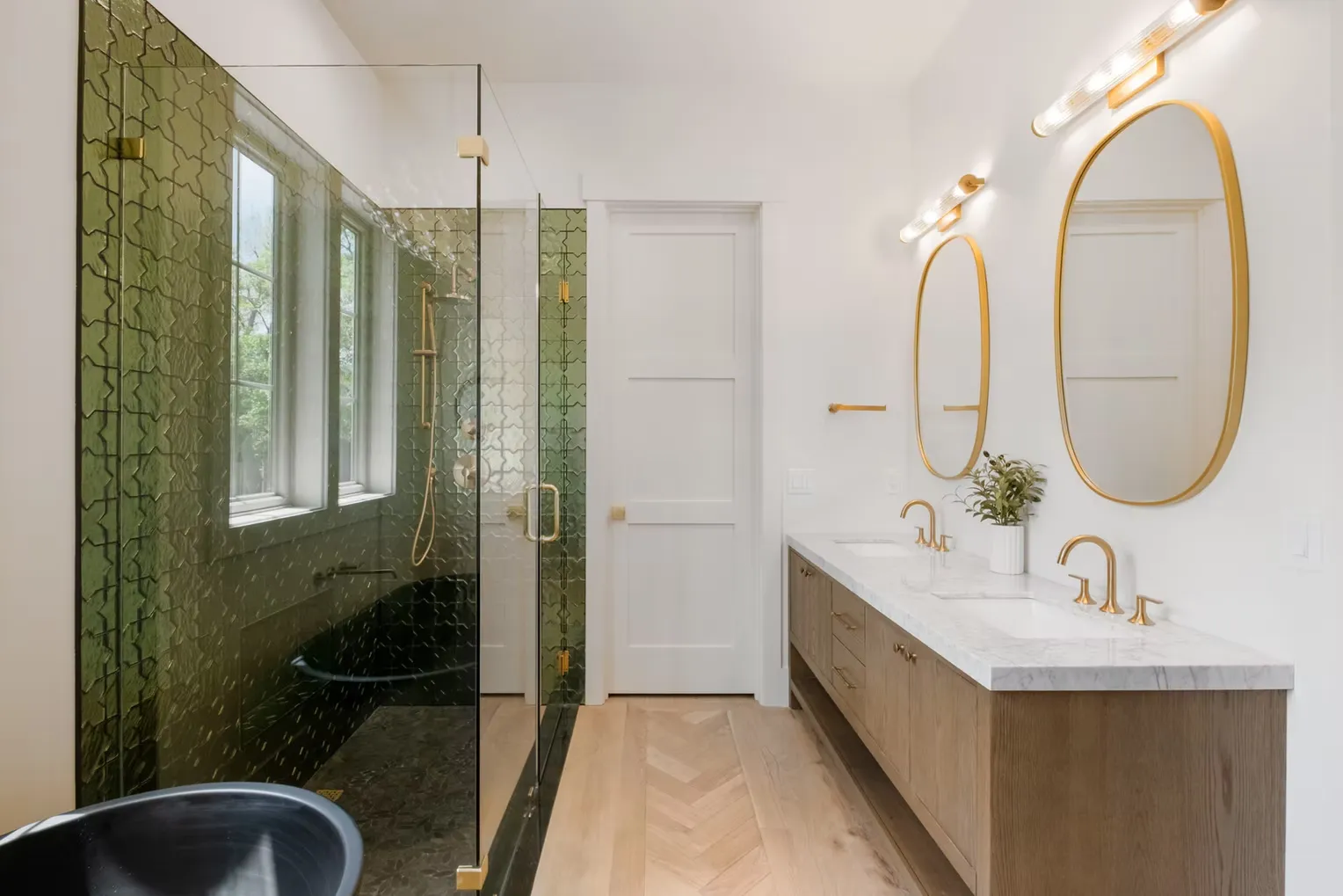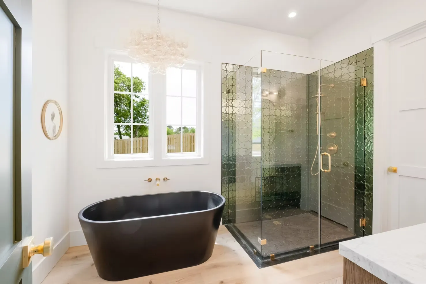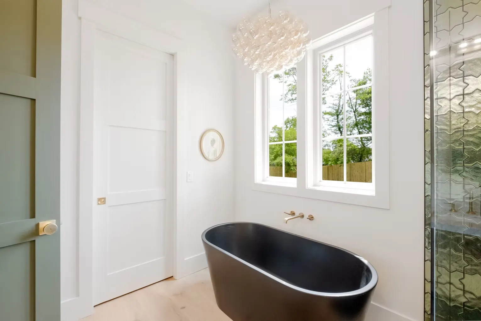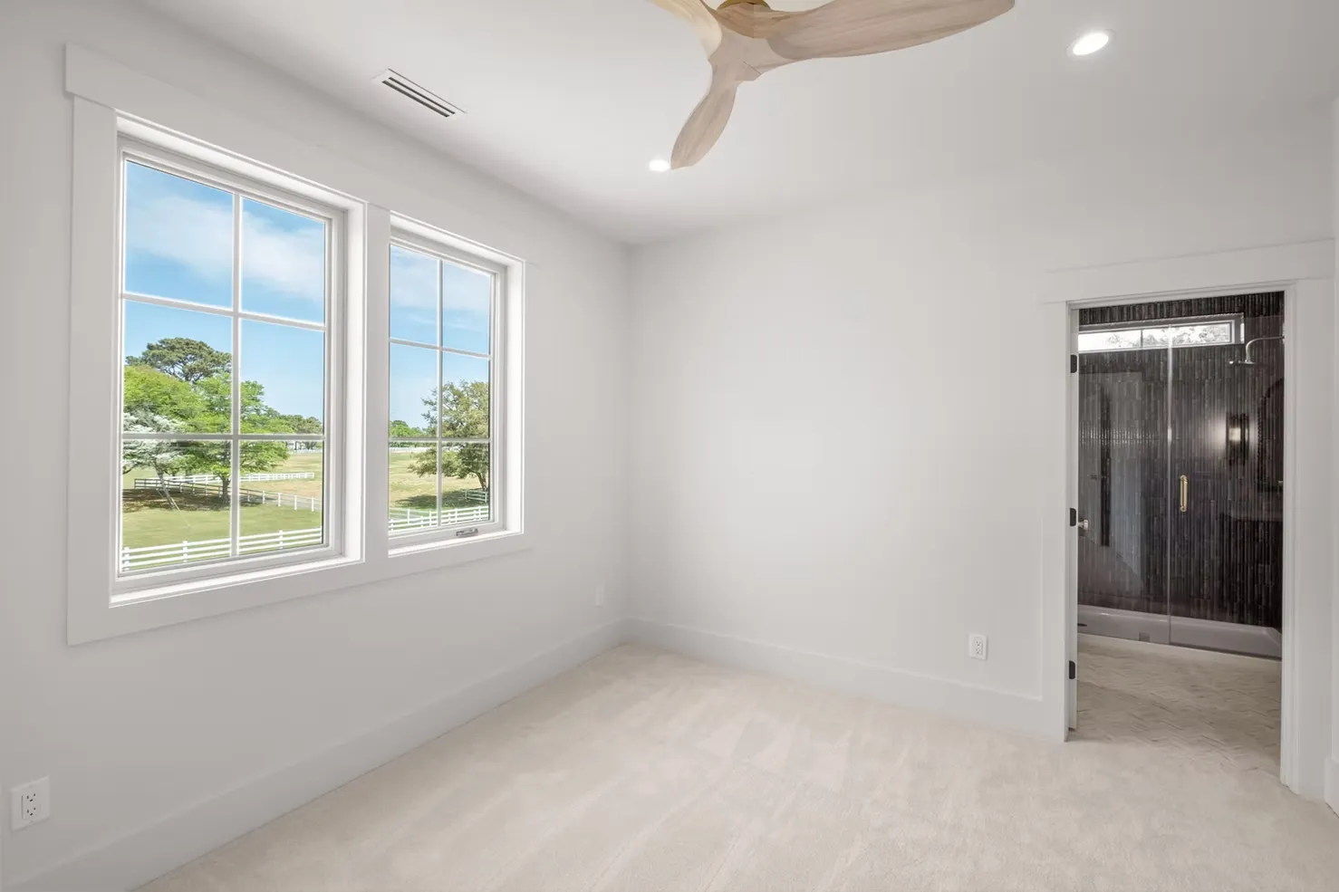 The Temperance features four bedrooms and four bathrooms. Large windows throughout the kitchen and living room provide picturesque views of the surrounding horse farm, creating a serene and inviting atmosphere. A spacious scullery enhances functionality, offering ample storage and workspace for effortless entertaining. Unique tile selections and carefully curated lighting add charm and character throughout the home.